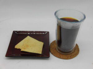 今朝の一杯は栗きんとんおこげとフローラル・ブルボンです。