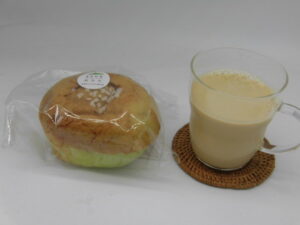 今朝の一杯はメロンパンとカフェオレです。