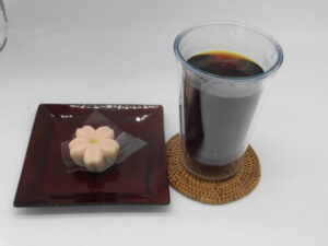 今朝の一杯は桜の練り切りとコロンビア・エル・パライソ農園アナエロビック・ライチです。